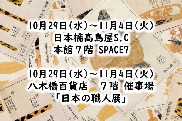 ブログ 今週の催事出展のお知らせです ・10月29日(水)~11月4日(火) 日本橋髙島屋S.C 本館7階SPACE7 ・10月29日(水)~11月4日(火) 八木橋百貨店 7階催事場 「日本の職人展」 Tweet Share RSS Pin it 投稿者: edo-bekkoya ブログ 只今出展中の催しです その他の商品 只今出展中の催しです 今週の催事出展のお知らせ コメント ( 0 ) トラックバックは利用できません。 この記事へのコメントはありません。